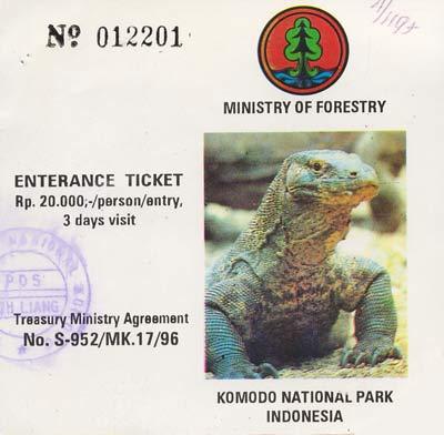 Eintrittskarte für den Nationalpark Komodo.