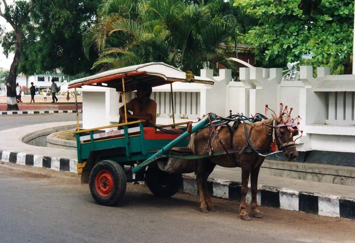 Eine Pferdekutsche als Taxi.