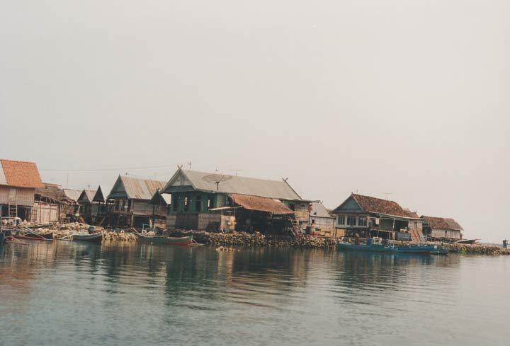 künstlich errichtetes Dorf auf dem Meer.