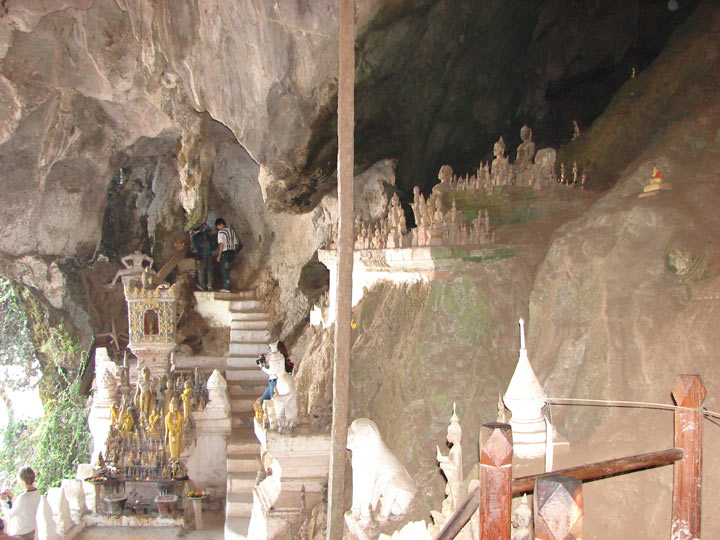 Ausflug zu den Pak Ou Höhle Die Höhlen sind von Tausenden von Buddha-Statuen bevölkert, von denen einige über 300 Jahre alt sein sollen.