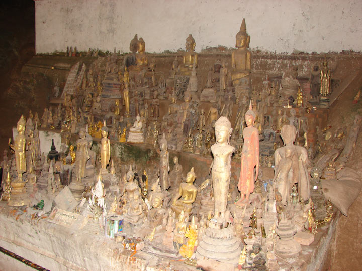 Ausflug zu den Pak Ou Höhle Die Höhlen sind von Tausenden von Buddha-Statuen bevölkert, von denen einige über 300 Jahre alt sein sollen.