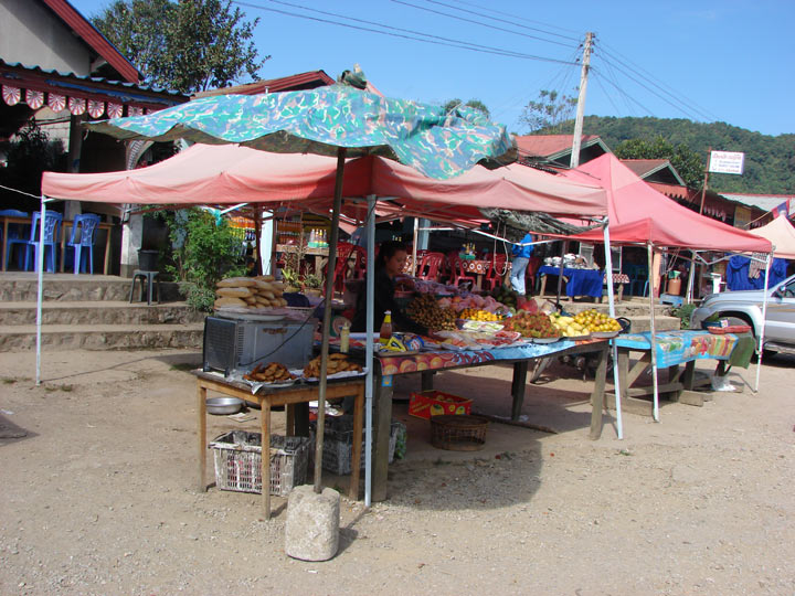 Auf der Fahrt nach Xieng Khuang (Ebene der Tonkrüge)Kleiner Marktstand