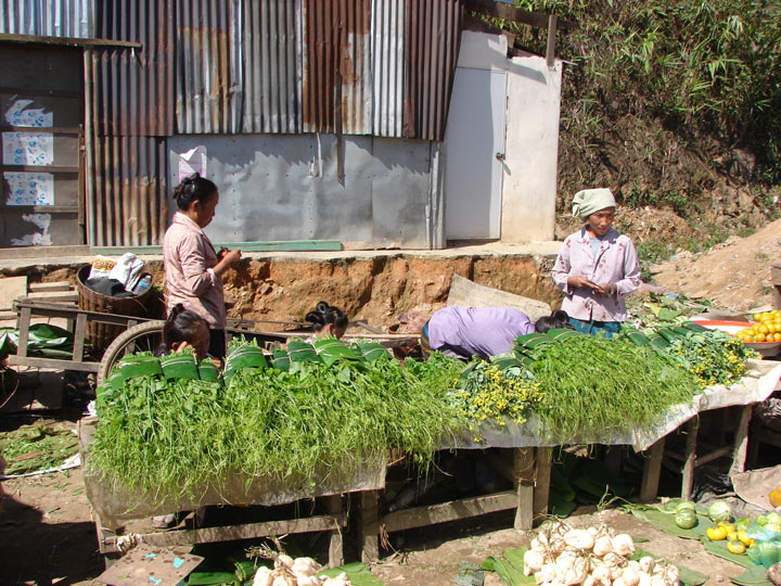 Auf der Fahrt nach Xieng Khuang (Ebene der Tonkrüge)Bäuerinnen verkaufen ihr Gemüse.
