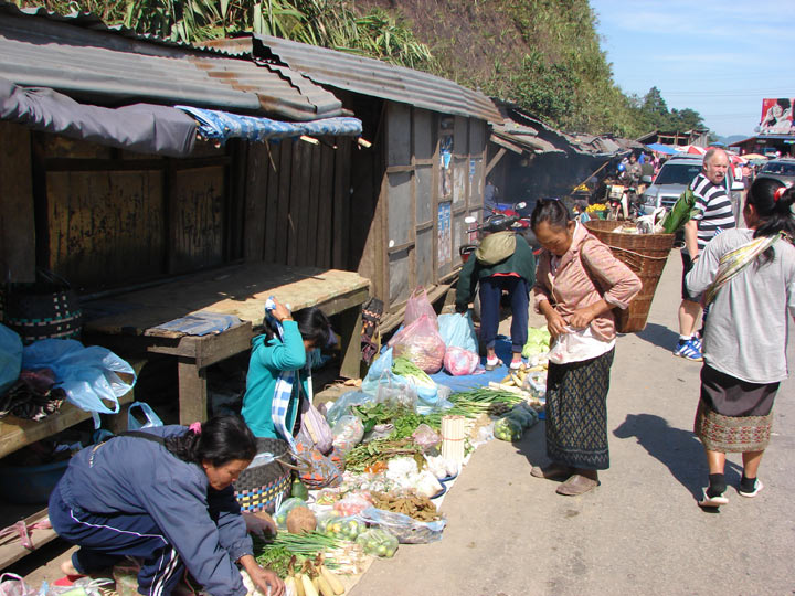 Auf der Fahrt nach Xieng Khuang (Ebene der Tonkrüge)Jeder versucht seine Waren an den Mann/Frau zu bringen.