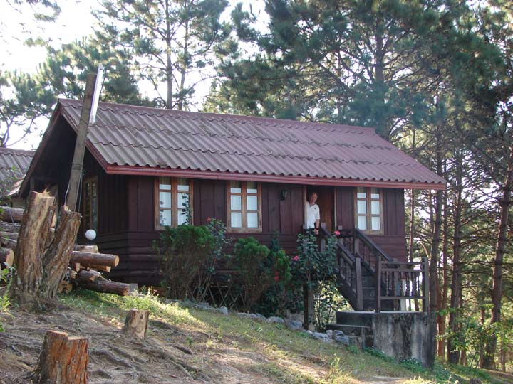 Das Phou Phadeng Auberge oder Auberge de la Plaine des JarsUnser Bungalow mit einer sehr schönen Aussicht auf Xieng Khuang.