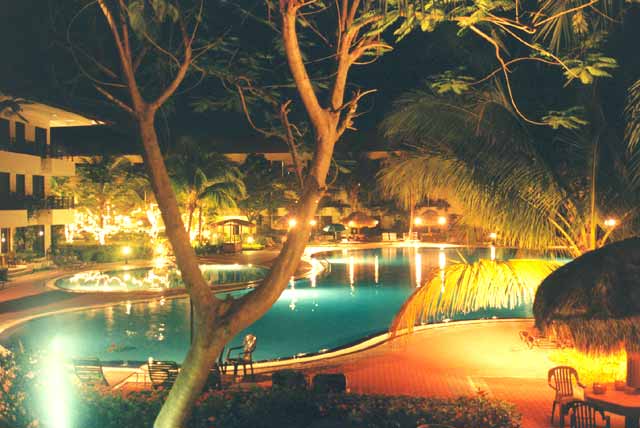 Hotel Holiday Villa Langkawi Der Pool bei Nacht. Blick von meinem Zimmer.