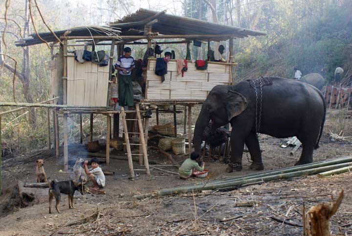 Elefantencamp, eine ganze Sippe lebt hier mit den Elefanten.