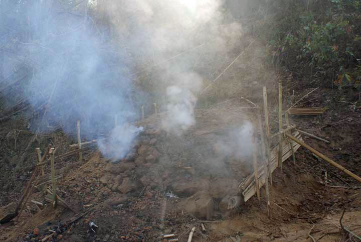Elefantencamp, in einfachen Köhler wird Holzkohle gemacht, ist zwar illegal, aber ein guter Nebenverdienst für die Holzarbeiter, die gerade mal CHF30.-- im Monat verdienen.