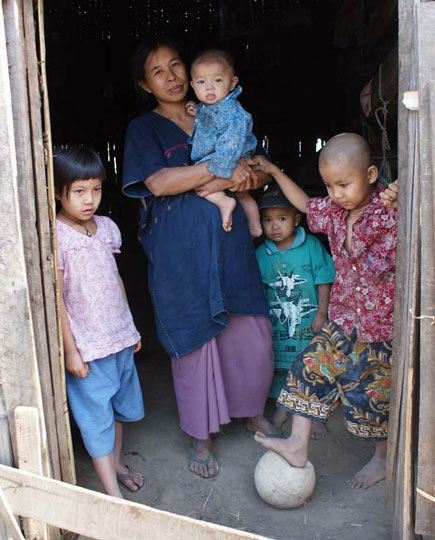 Das Kayin Dorf, Mutter mit ihren Kindern.