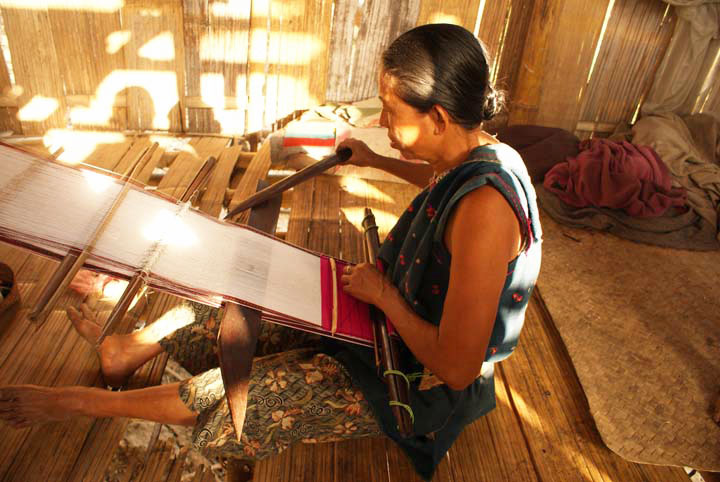 Das Kayin Dorf, weben mit einem sehr einfachen Webstock.