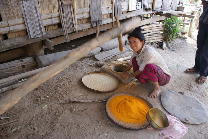 Das Kayin Dorf, auf die gleiche Art wird auch Curcuma gemahlen.