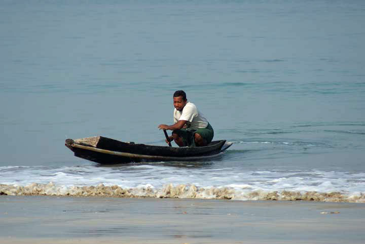Ngapali Beach, Fischer auf einem einfachen Einbaum.