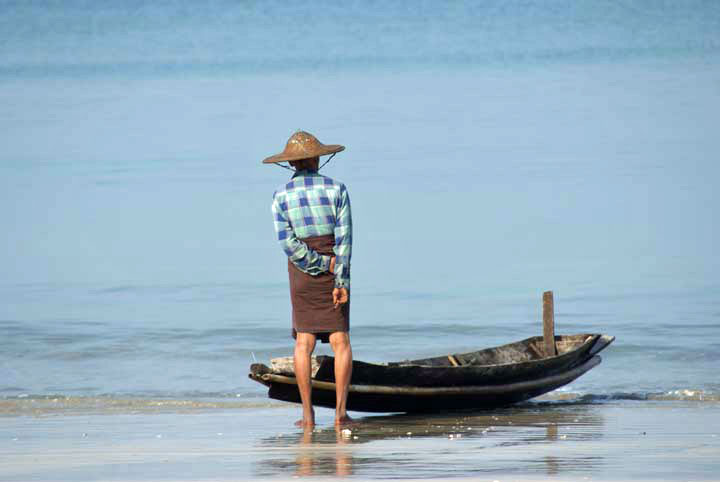 Ngapali Beach, Fischer auf einem einfachen Einbaum.
