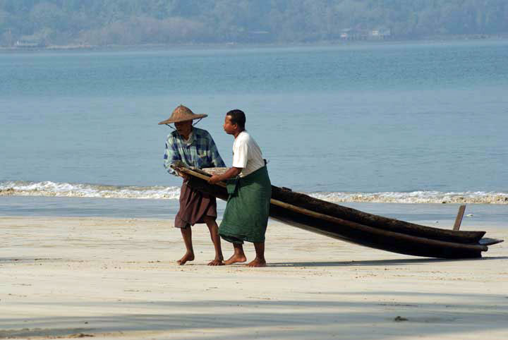Ngapali Beach, Fischer auf einem einfachen Einbaum.