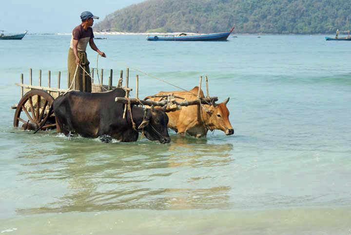 Ngapali Beach, Ochsenkarren sind auch am Strand nicht wegzudenken.