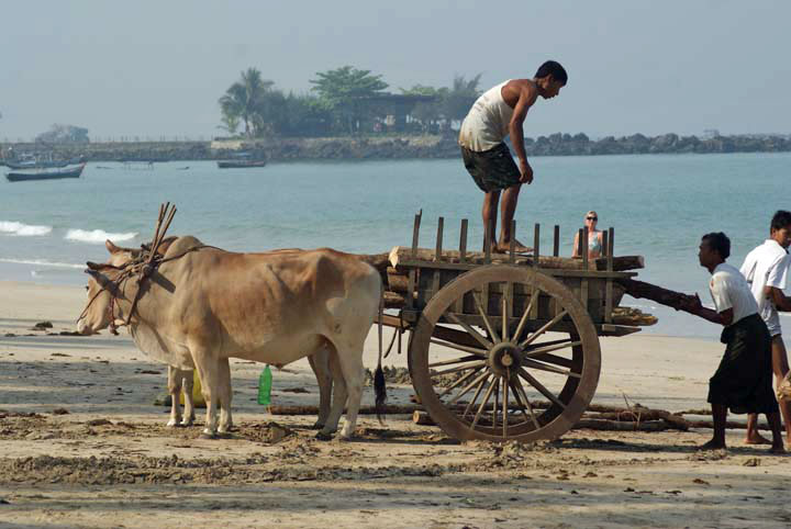Ngapali Beach, Ochsenkarren sind auch am Strand nicht wegzudenken.