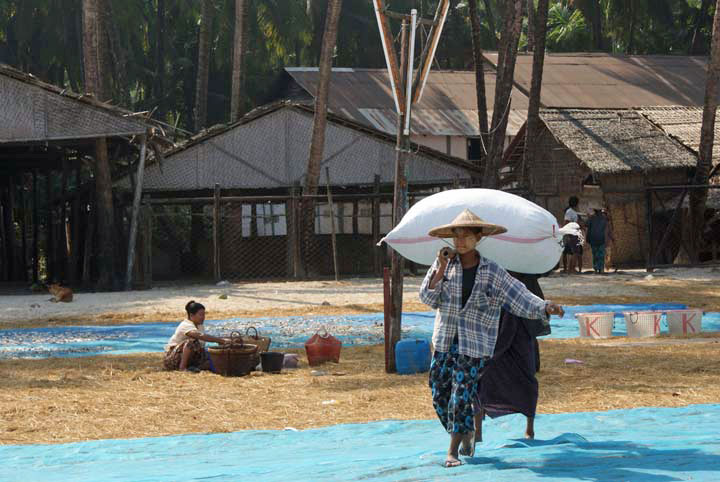 Ngapali Beach, sind die Fische trocken werden sie in Säcke verpackt.