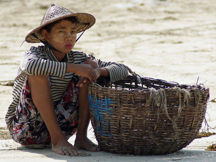 Ngapali Beach, Einheimische mit dem typischen Make-Up.