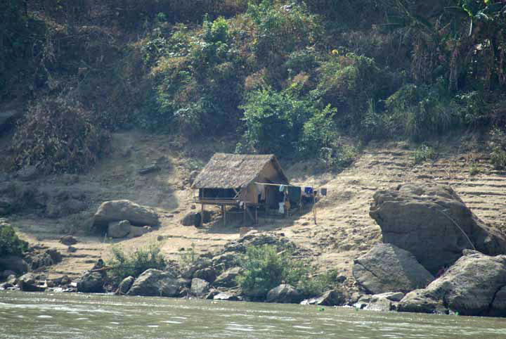 Akauk Taung, einfache Unterkünfte am Flussufer.