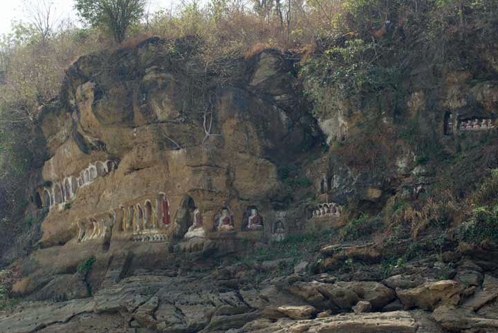 Akauk Taung, in den Felsen gehauene Buddhafiguren.