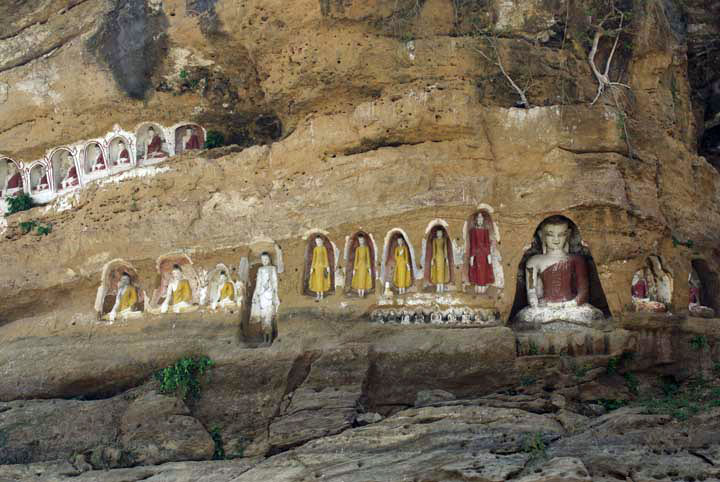 Akauk Taung, in den Felsen gehauene Buddhafiguren.