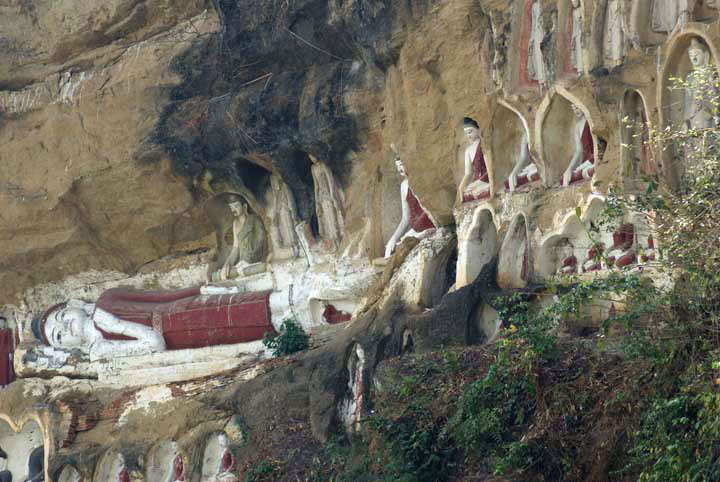 Akauk Taung, in den Felsen gehauene Buddhafiguren.