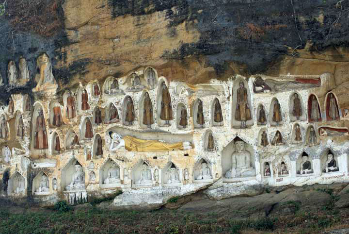 Akauk Taung, in den Felsen gehauene Buddhafiguren.