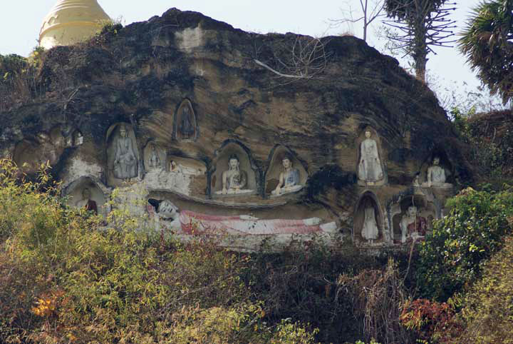 Akauk Taung, in den Felsen gehauene Buddhafiguren.
