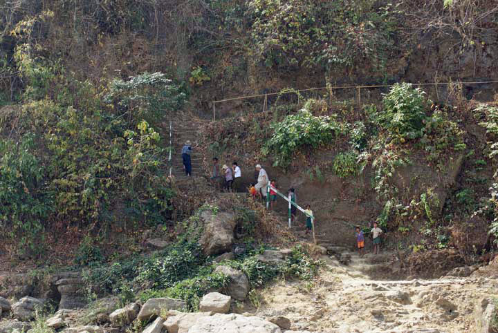 Akauk Taung, Aufstieg zum Kloster das auf dem Hügel oberhalb der Buddhafiguren liegt.
