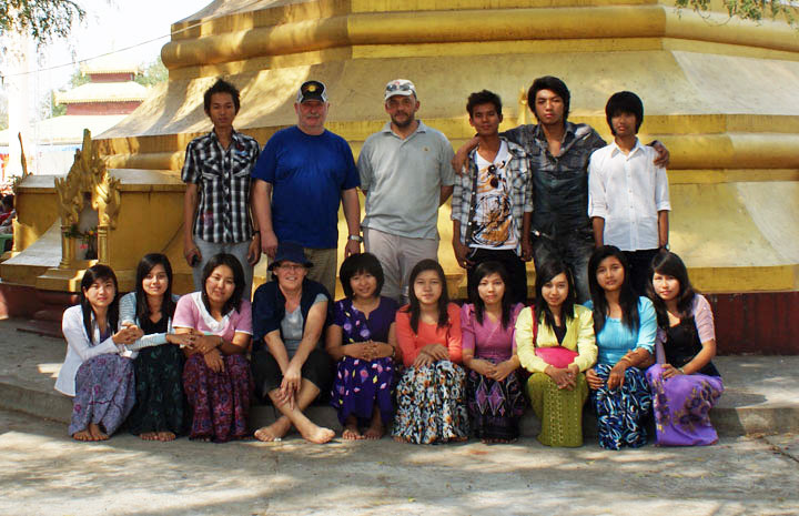 Shwe Bon Thar Muni Pagode, wir wurden von einer einheimischen Gruppe angefragt ob sie sich mit uns fotografieren können.