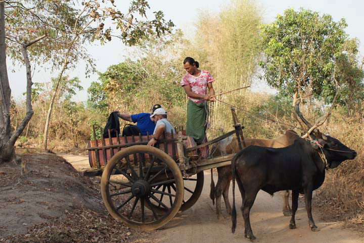 Tour mit einem Ochsenkarren, absteigen für die Besichtigung einer Pagode.