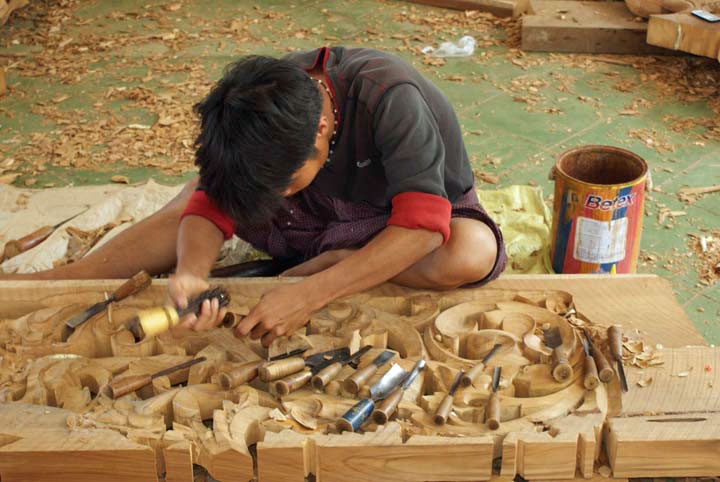 Shwe Sandaw Pagode, neue Schnitzereien für die Pagode.