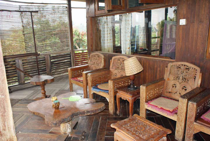 Myanmar Beauty Guest House, Terrasse mit rustikalen Möbel.