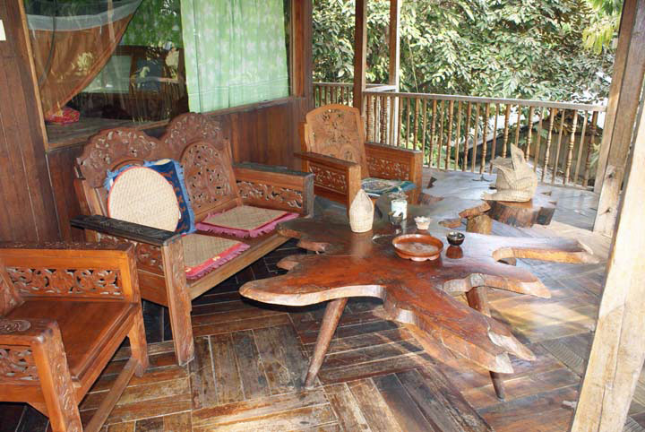 Myanmar Beauty Guest House, Terrasse mit rustikalen Möbel.