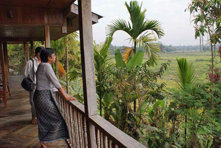 Myanmar Beauty Guest House, Aussicht vom Balkon ins Grüne.