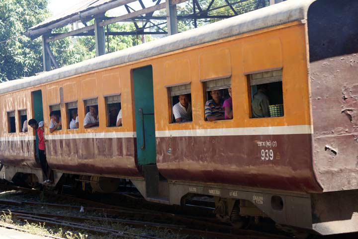 Auf dem Bahnhof in Yangon, mit diesem Zug werden wir gleich 3 Stunden unterwegs sein.