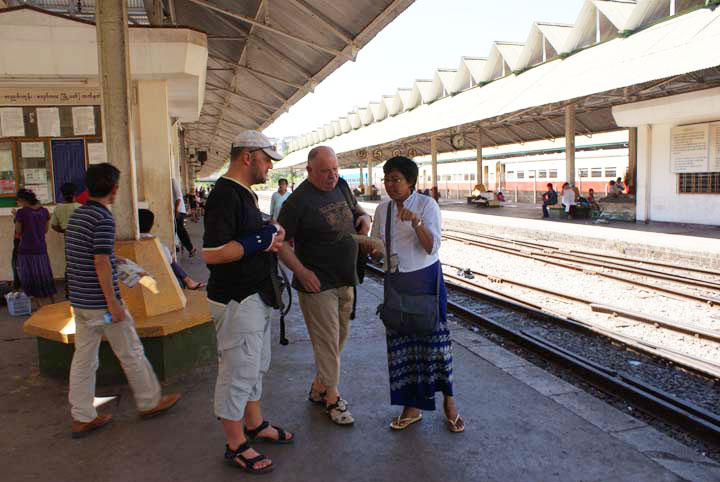 Auf dem Bahnhof in Yangon, warten auf den Zug.
