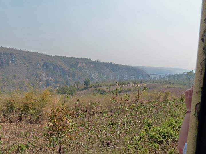Bahnfahrt nach Thibaw übe das Goteik Viadukt Das Viadukt ist schon zu sehen.