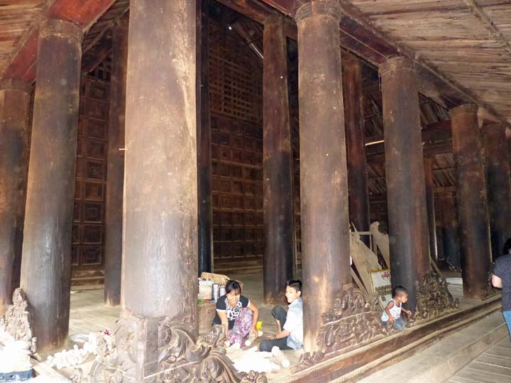 Pakhangyi besuchten wir das grösste hölzerne Kloster Sogar die Pfeiler waren aus Holz.