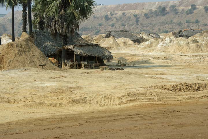 Fahrt zu den Pho Win Taung Höhlen Hier wird Sand gefördert.