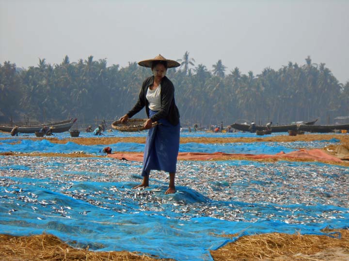 die kleinen Fische werden getrocknet