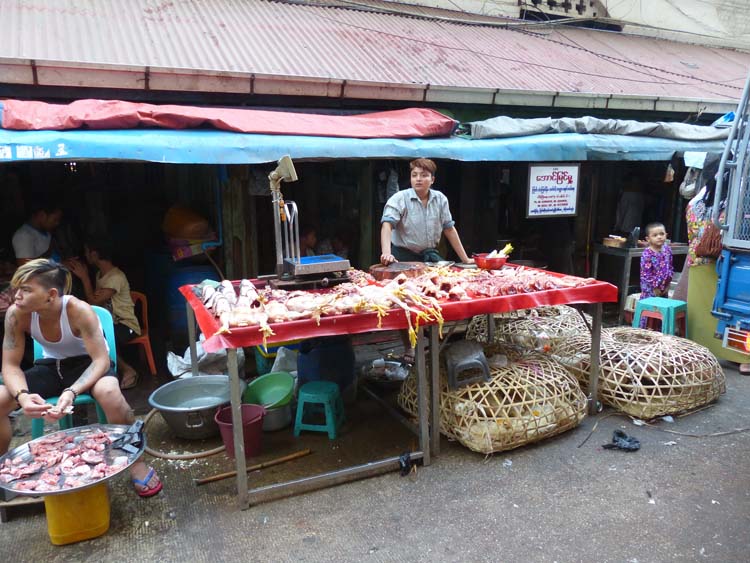 Die Hühner sind wirklich frisch, unterm dem Tisch leben sie sogar noch!