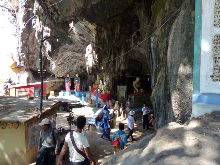 Bayint Nyi Naung Höhle. Hier ist der Zugang (rechts) zur Höhle.