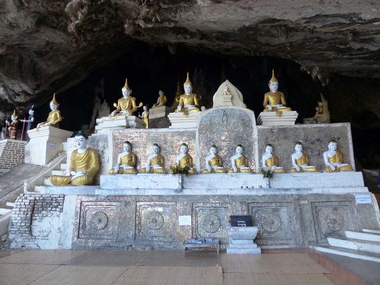 Ya Thay Pyan Höhle. Buddhas bewachen den Eingang zur Höhle.