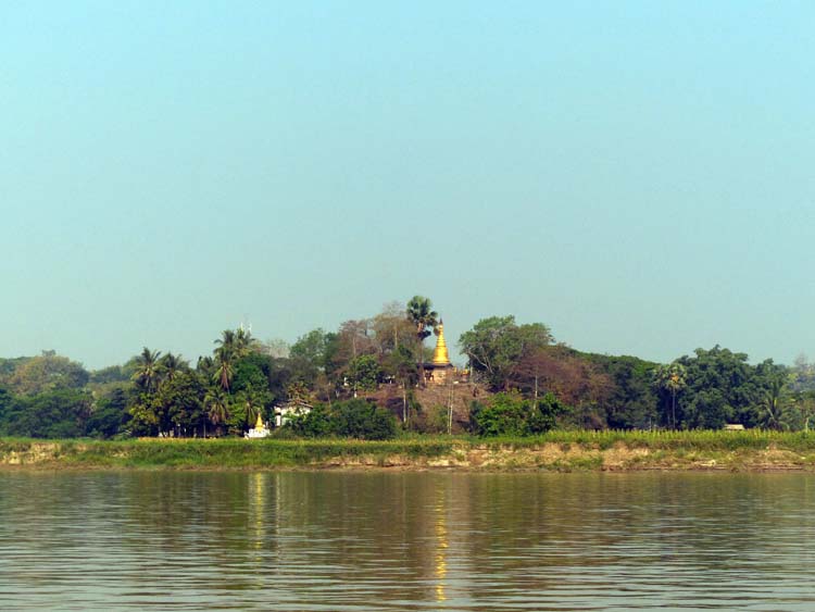 Bootsfahrt von Hpa-an nach Mawlamyaing. Stupas am Ufer.