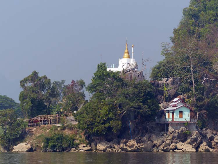 Bootsfahrt von Hpa-an nach Mawlamyaing. Überall sieht man auf den Felsen Stupas.