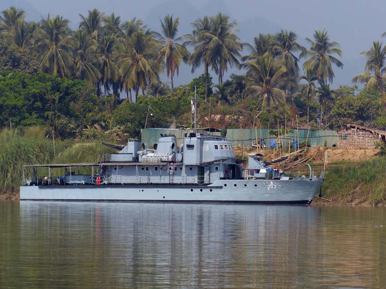 Bootsfahrt von Hpa-an nach Mawlamyaing. Auch die Marine ist vertreten.