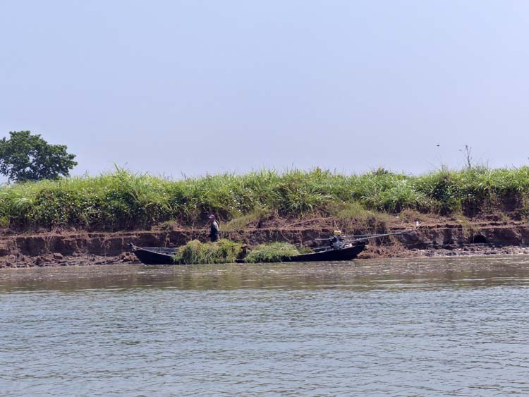 Bootsfahrt von Hpa-an nach Mawlamyaing. Wertvoller Humus mit Gras wird abtransportiert.