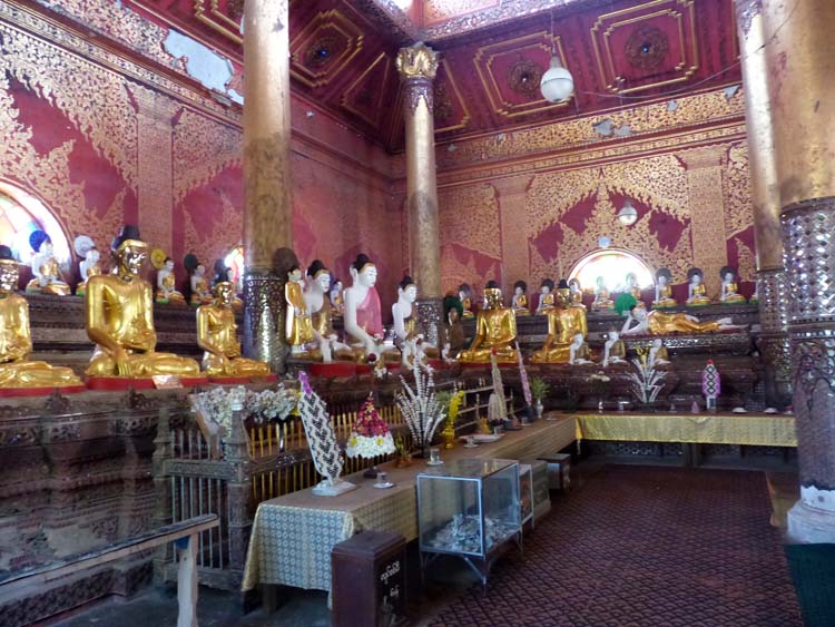 U Nar Auk Pagode. Eine Sammlung von Buddhas.