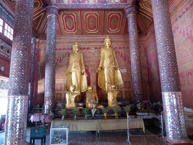 U Nar Auk Pagode. Im Innern wunderschöne Buddhafiguren.